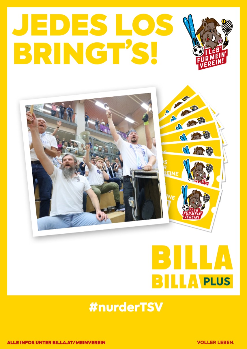 Bei jedem Einkauf bei BILLA Plus bekommt ihr ab einem bestimmten Betrag ein Vereinslos. Diese Lose könnt ihr ganz einfach online unserem Verein zuordnen – TSV Hartberg Volleyball auswählen, fertig! Alternativ könnt ihr die Lose auch in die aufgestellten Boxen nach der Kassa einwerfen oder diesen Link verwenden: